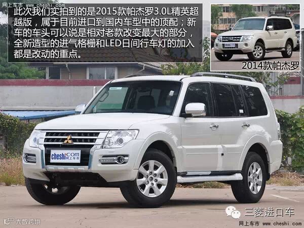 三菱帕杰罗是一款很经典的越野车,其名字来源于一种南美洲山猫,以身手敏捷著称,而同名的帕杰罗自然也是越野车中敏捷的代表;此次我们实拍到的是2015款的三菱帕杰罗,在继承了老款车型精髓的基础上,外观的变化让它看起来更为时尚,下面就让我们一起来看看这只“山猫”都做了什么改变。