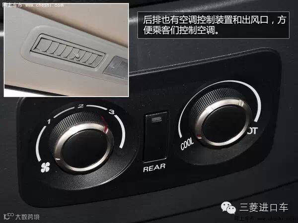 自动空调只有一个温区,最常用的温度设置和风量调节采用旋钮来控制,用着很顺手;但旋钮上一圈亮闪闪的镀铬装饰与内饰的整体风格真的不是很搭。后排也有空调控制装置和出风口,方便乘客们控制空调。