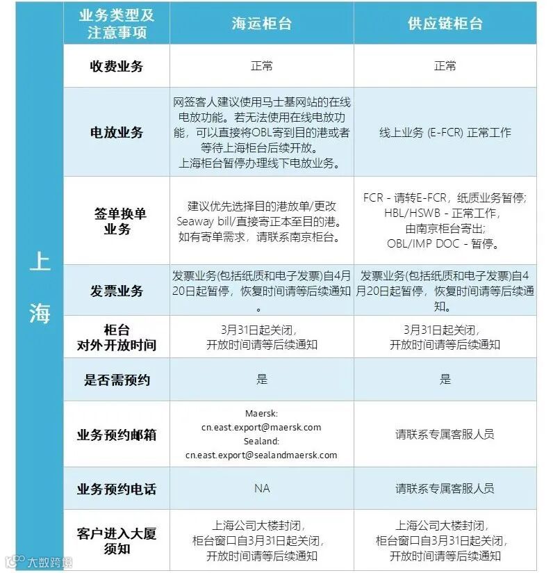 马士基将豁免于3月28日-5月29日之间产生的电放费、第三地签单费、正本提单改成海运单(Way Bill的改单费)。