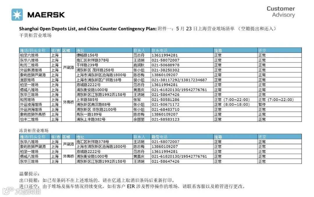 营业堆场清单(空箱提出和还入)干货柜营业堆场