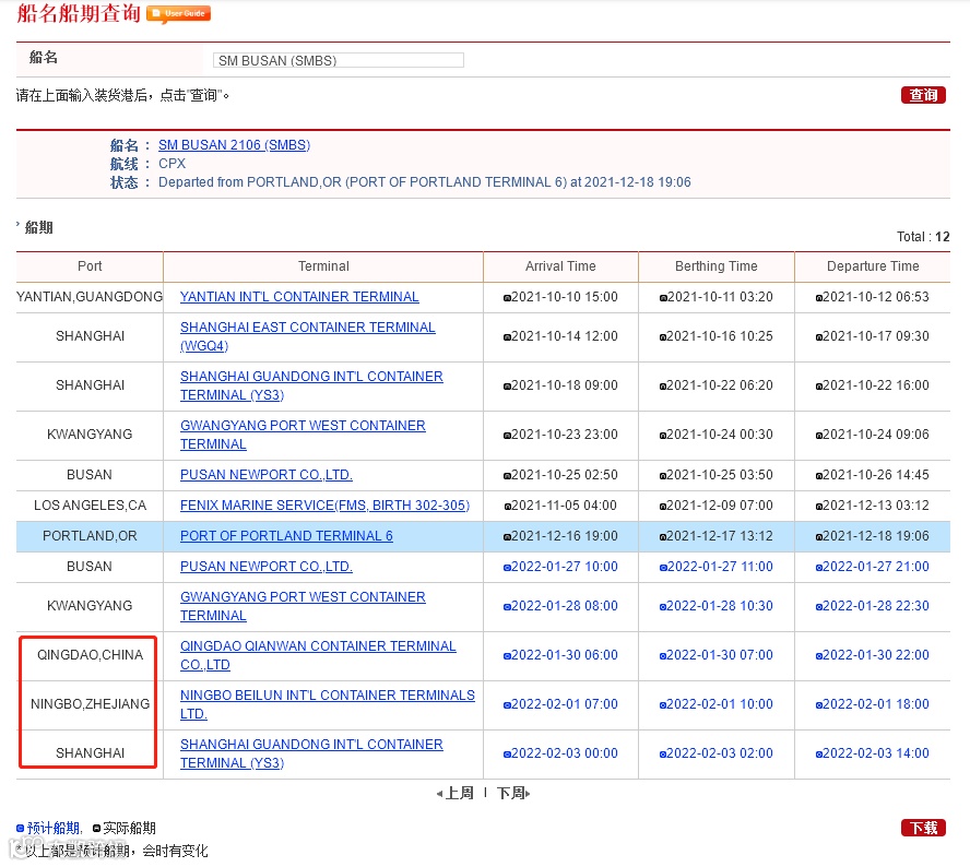 IC EXPRESS)服务。该船12月13日从洛杉矶港出发,中途停靠波特兰港,按照原定船舶航行计划,