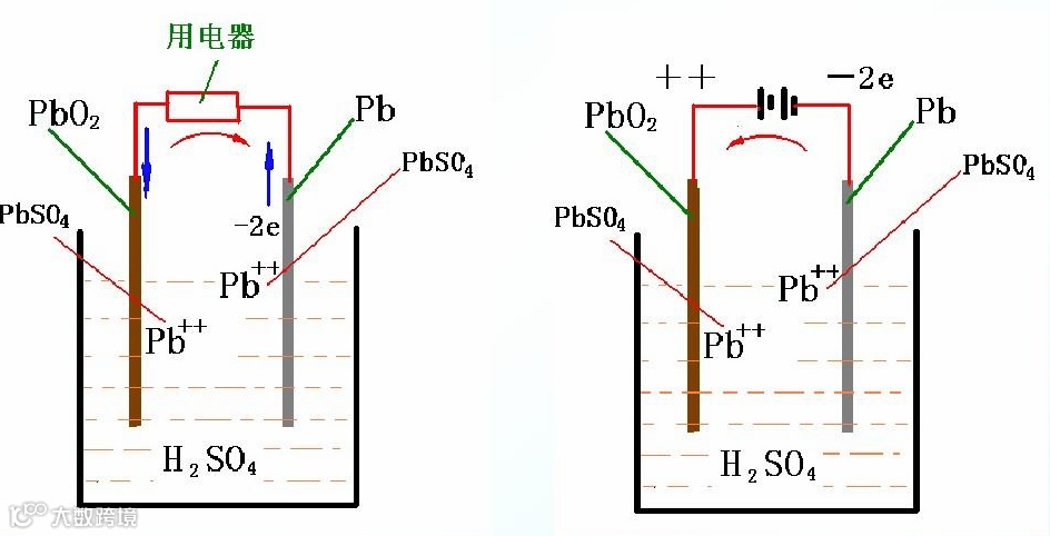 铅酸蓄电池放电、充电示意图