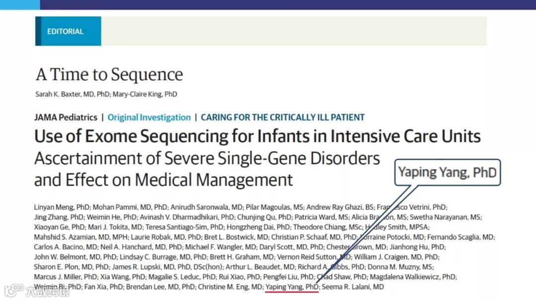 杨博士在分子遗传领域拥有近 20 年的丰富经验,现任美国贝勒医学院教授和贝勒遗传学实验室 NGS 分部主任等职务。她在多家全球知名的学术杂志上发表过 70 余篇学术论文。其中包括多篇以第一作者或高级作者身份发布于 New England Journal of Medicine, JAMA, Nature Genetics, American Journal of Human Genetics 的文章,在推动以二代测序为基础的分子检验在疾病诊断、管理与治疗方面起到了关键作用。