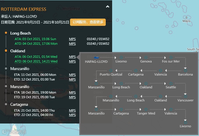 “Rotterdam Express”轮服务于赫伯罗特拉丁美洲至北美的MPS航线,涉及ALIANÇA、HAMBURG SÜD、HAPAG-LLOYD、ZIM4家船公司共舱。