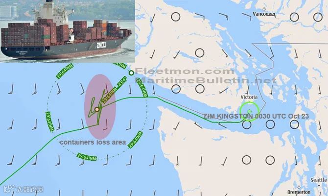 而就在此前一天,该船还在温哥华附近,丢失了40多个集装箱。