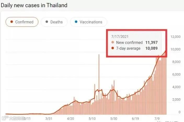 17日,泰国新冠疫情管理中心报告称,泰国单日新增新冠肺炎确诊病例首次超万例,达11397 例,单日新增死亡病例首次破百,达141例,新增确诊病例数和死亡病例数同时创新高。