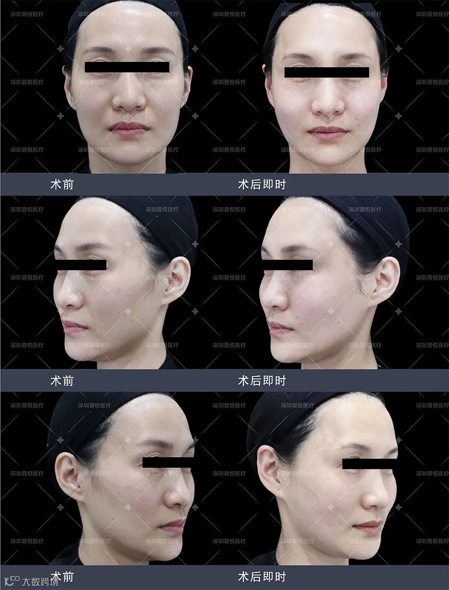 姜中蓉医生遵从了高光以及暗影的正常比例进行“高光塑颜”调整,可以看到术后的面部高光点,往内聚;面部暗影部分,即侧面容量缺失的部位得到改善,整体面部轮廓曲线柔和了。虽然对面部添加了容量,但脸型反而显得更小,面容更显年轻,开心。