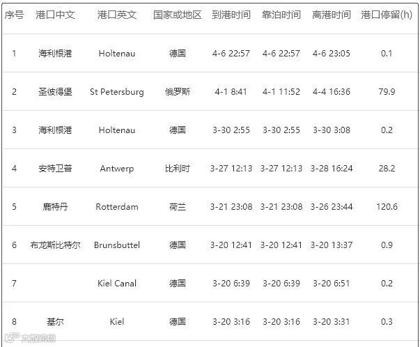 近期挂靠港口如下: