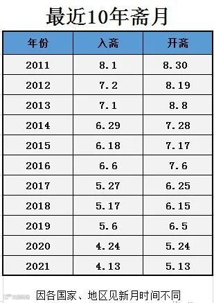 一年一度的穆斯林的斋月又要来了!2021年的斋月将至,全球近20亿穆斯林入斋时间为2021年4月13日,出斋时间为2019年5月13日。这是最近十年来最早开始的斋月。