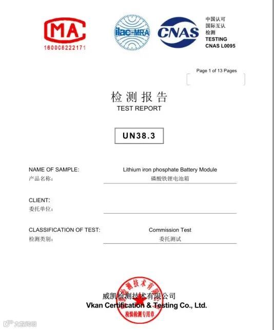 1️⃣ 电池须通过UN38.3测试要求,及1.2米跌落包装试验;