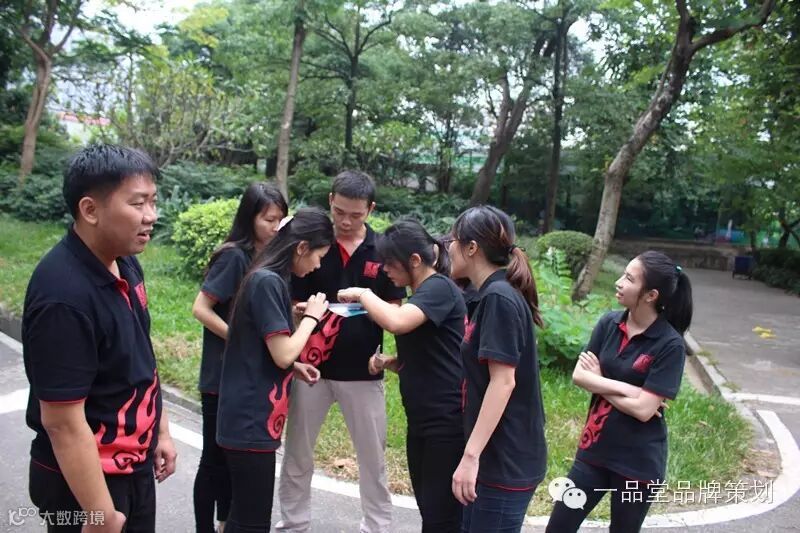 6日早上全体伙伴乘大巴从公司出发到广州天河公园,拓展活动在此正式拉开序幕。首先全体伙伴随机分成6个小组,每个小组自行选出队长、旗手,并想出队名及口号,在队旗上写上本队队名,最后进行了团队展示。