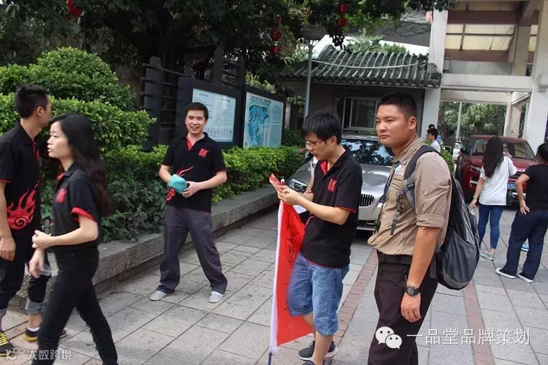 接下来就是到荔湾湖公园收集毛笔、墨水、白纸写上一行字并找10个人签名,这又是考验团队智慧的时候,各队各出奇招,用不同的方法去完成了这个项目。此时很多队员已经感到累了,但没人掉队,也没人说要休息一下,大家仍在坚持接受下一个任务。