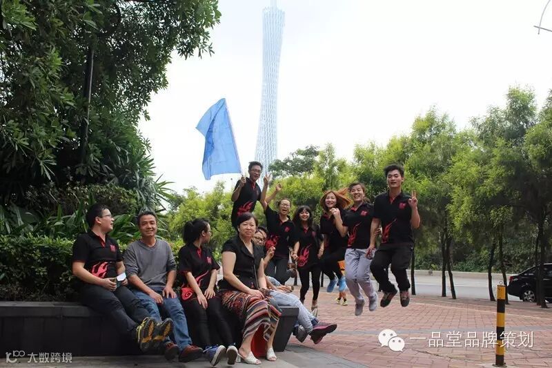 接下来开始第二个任务:找广州塔。各队可步行可坐车去到能见到广州塔的地方,找3个陌生人以广州塔为背景合影并要求全体人员双脚离地,同时还要完成跳绳或踢毯子项目。此轮过后大家的体力开始下降,考验吃苦的时候到了。
