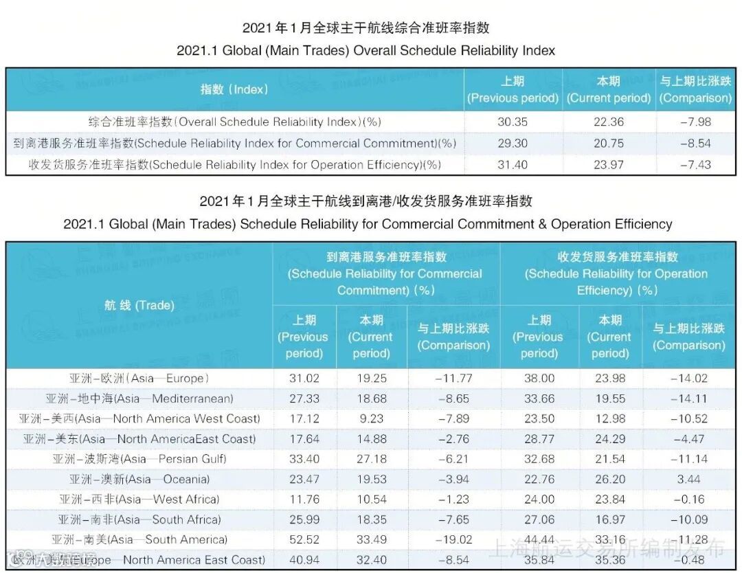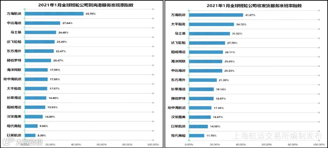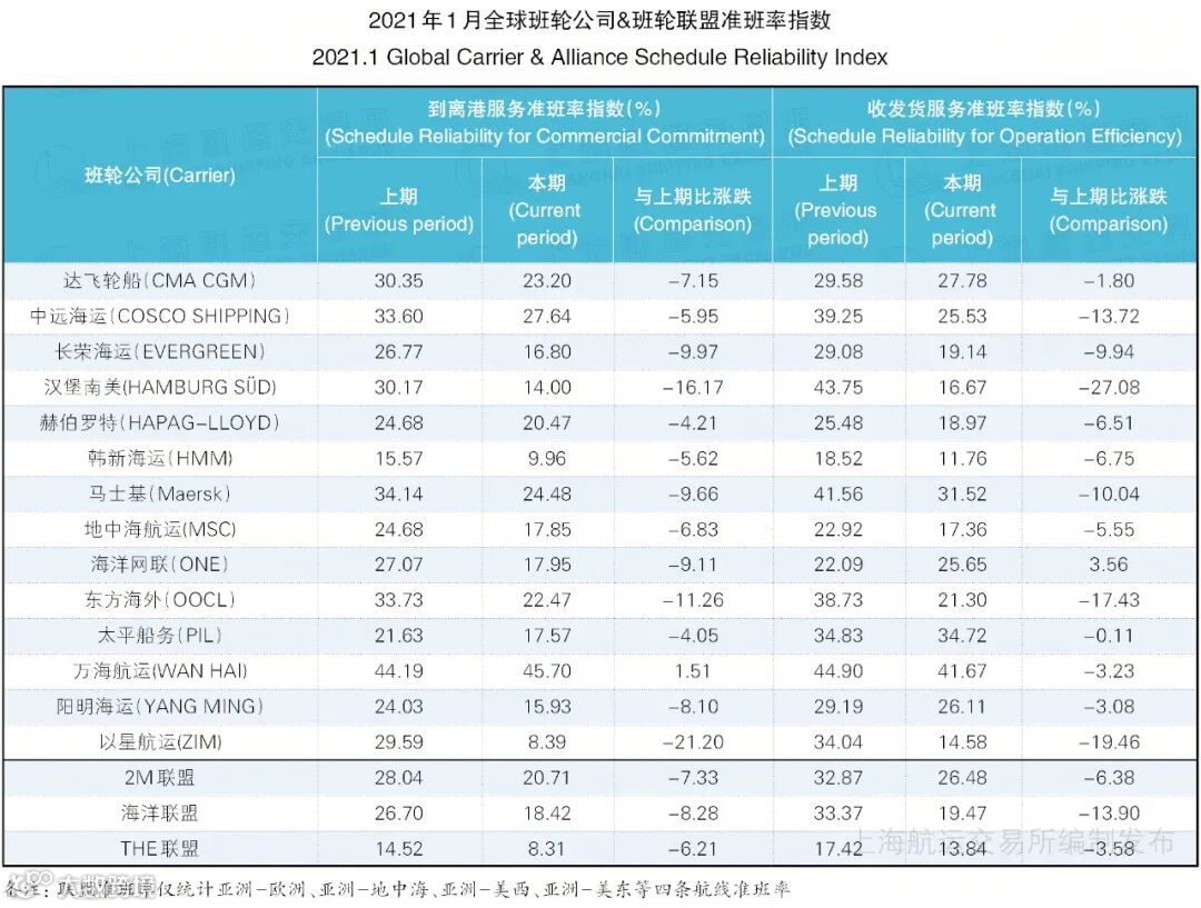 海洋联盟到离港和收发货服务准班率均居第2位,分别为18.42%和19.47%,降幅较2020年12月分别减少8.28个和13.90个百分点。 -