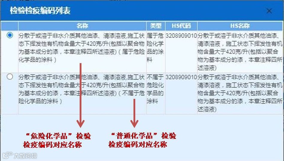 由于海关税则中的HS编码及商品名称与我国《危险化学品目录》中的化学品尚未一一对应,部分普通化学品与危险化学品共用一个HS编码。为便于精准作业,海关总署在10位HS编码后扩展了3为检验检疫编码,并对应了不同名称。企业应根据产品是否属于危险化学品,分别选择代表“危险化学品”和“普通化学品”的检验检疫编码对应名称。