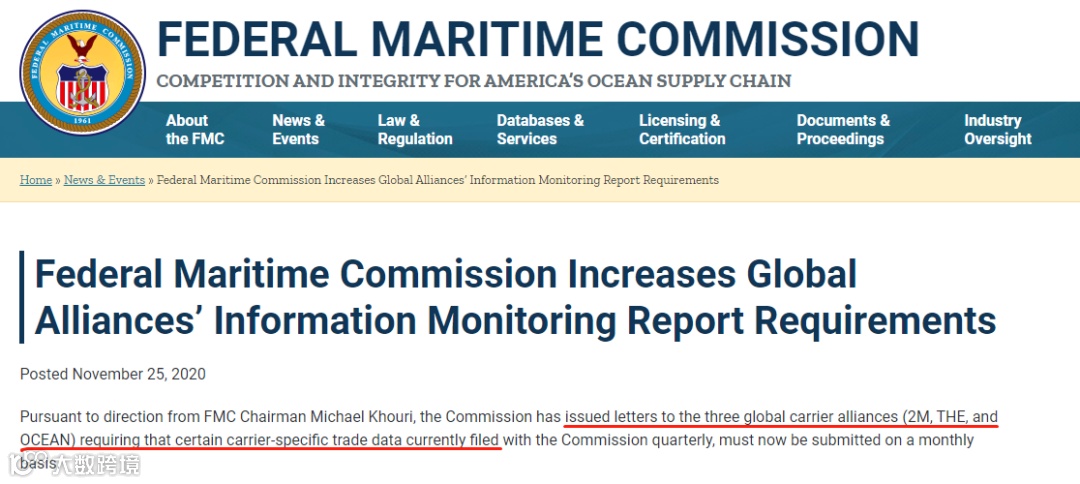 美国联邦海事委员会(FMC)为了打击潜在的违反竞争法规的行为,美国当地时间11月25日宣布采取强有力的措施,加大对三大航运联盟的监管力度。
