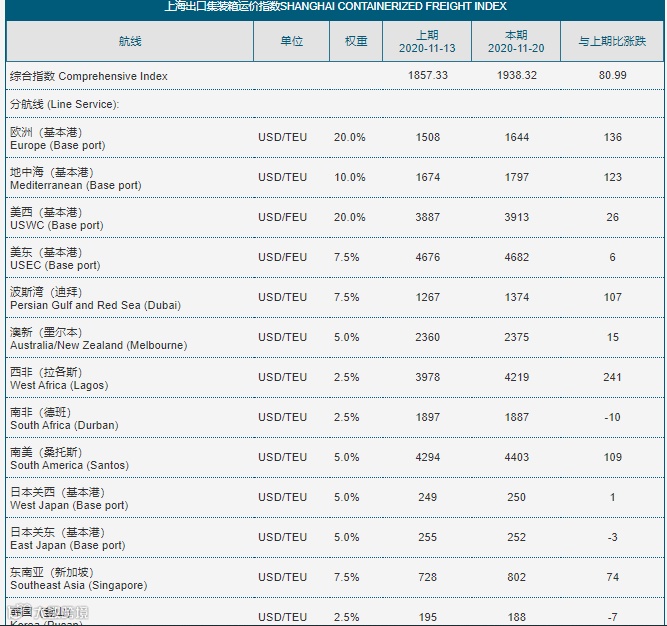 由于新冠肺炎疫情的影响,国际物流运力下降,导致集装箱船运费大涨,美西航线运价更是较年初涨了3倍;欧洲和南美航线价格也飙涨,甚至盐田至西班牙阿尔赫西拉斯的40英尺高柜报出了10000美元的天价!东南亚航线更是一夜之间暴涨1000美元,在运力紧张的背景下,行业频频产生甩柜的现象。根据最新一期上海航运交易所运价指数,各航线运价指数继续上涨!