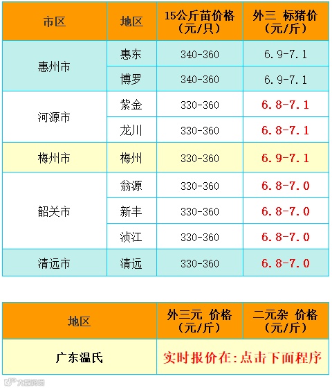 APP报价 -13日 广东猪价行情 微涨
