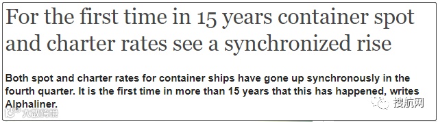集装箱的运价和租船价格在第四季度同步上涨,这是15年来第一次出现这种情况,知名航运分析机构Alphaliner写道。
