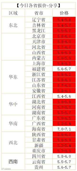 国生猪收购均价呈现上涨态势,标准体重生猪平均价格为5.77元/斤。猪价北强南弱,东北地区散户局部上涨5分到1毛左右,标猪主流价格在5块4到5块6,河南一哥出栏价格上纱1-2毛,成交价格要在5块9到6块,广东大场挂牌价格下调1毛,成交价格6块2,南方其他规模猪场稳中偏弱5分到1毛。南方散户大体稳定。这两日有二育再次进场,看涨元旦和春节,有渠道的计划卖小刀,继续博短期。