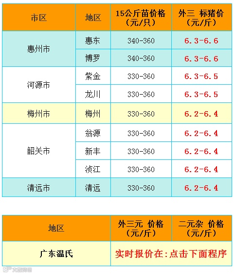 有红绿颜色部分是相对昨天有所变动的猪价;