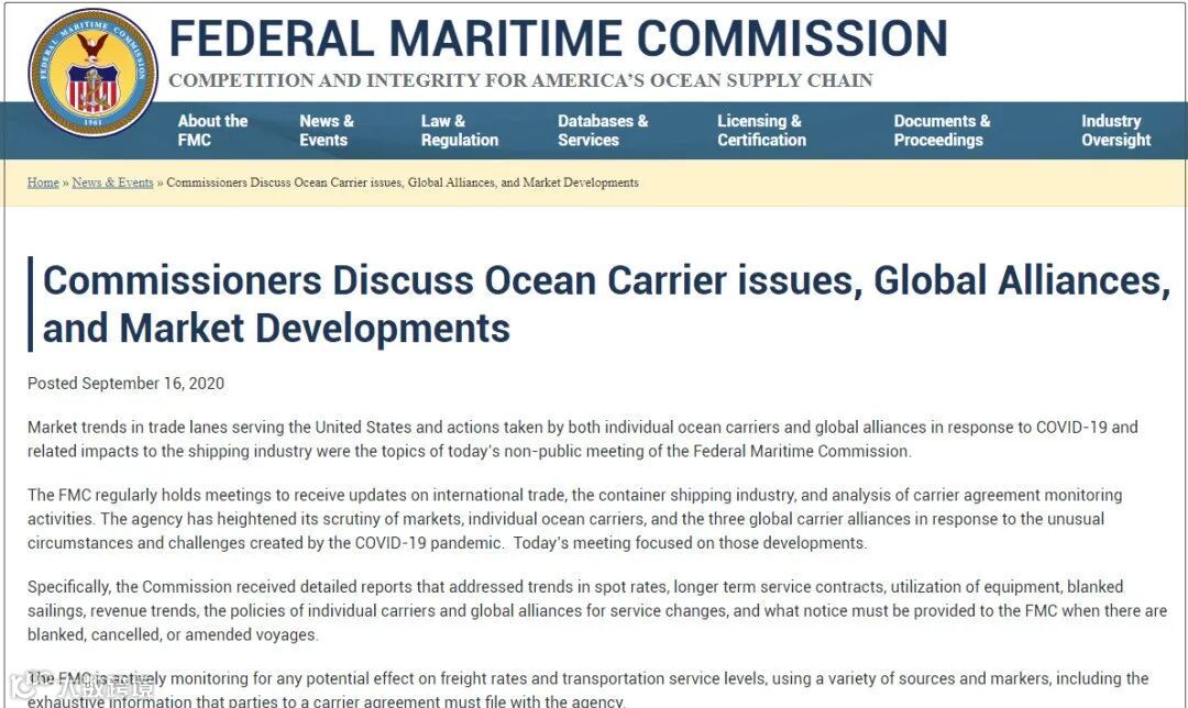 美国联邦海事委员会说,它已经收到了“详细报告”,这些报告涉及即期货运价格,长期服务合同,设备使用,停航空班,收入趋势,个别承运人和航运联盟的服务变更政策。