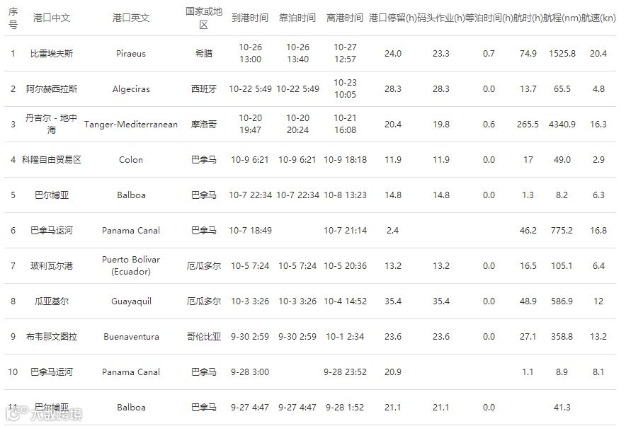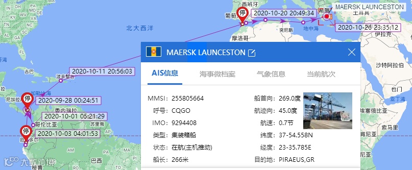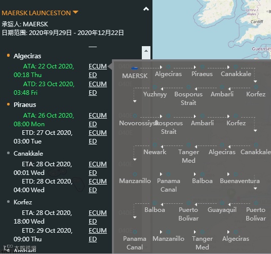 根据大船期数据显示,该轮服务于跨大西洋的往返于南美之欧洲地中海的ECUMED航线,有多家船公司共舱:HAMBURG SÜD、MAERSK、MCC、SAFMARINE、SEAGO、SEALAND。