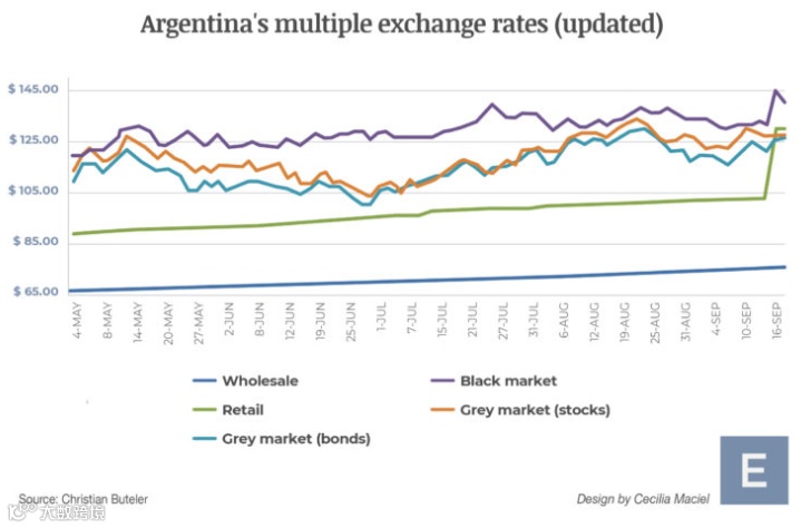还有一个问题是,现行的政府外汇限制措施和团结税(impuesto PAIS)使得购买美元的官方市场完全消失了。