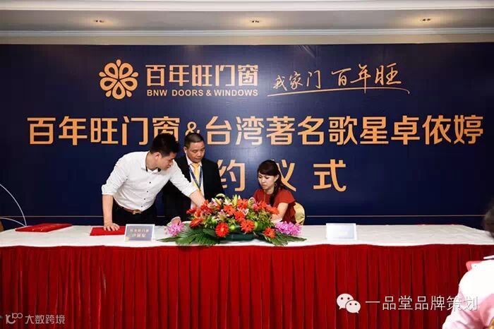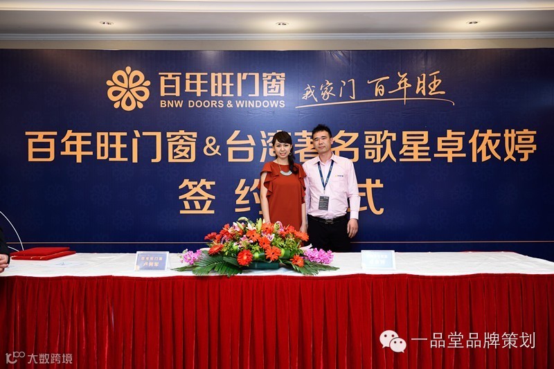在佛山,有一家大型的门窗企业叫百年旺门窗,该企业目前发展势头迅猛,在企业形象及品牌传播上需要进一步的提升。如今门窗行业已掀起一股请明星代言的潮流,百年旺门窗也想跟上这股潮流,在一品堂公司的精心推荐下,百年旺门窗最终选定卓依婷为形象代言人,并于3月31日在广州科尔海悦酒店签定代言合同。