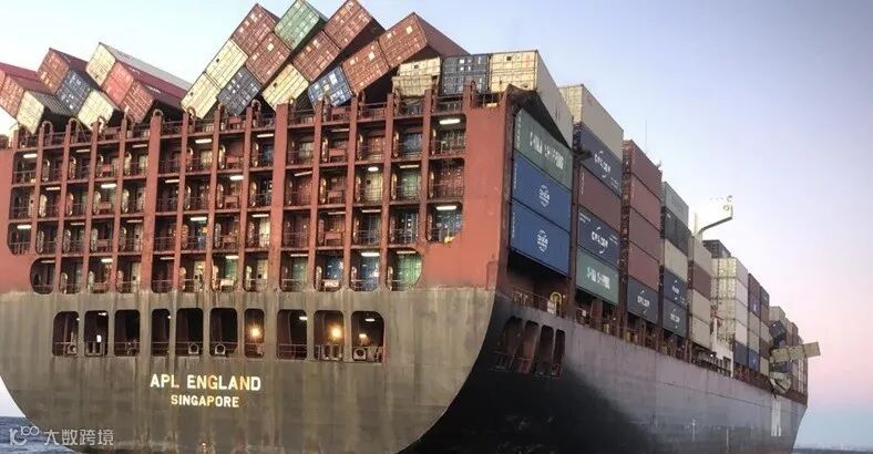 今年的5月,“APL ENGLAND”轮在海上掉落了50个集装箱,据报道仍有集装箱碎片被冲上澳大利亚海滩。
