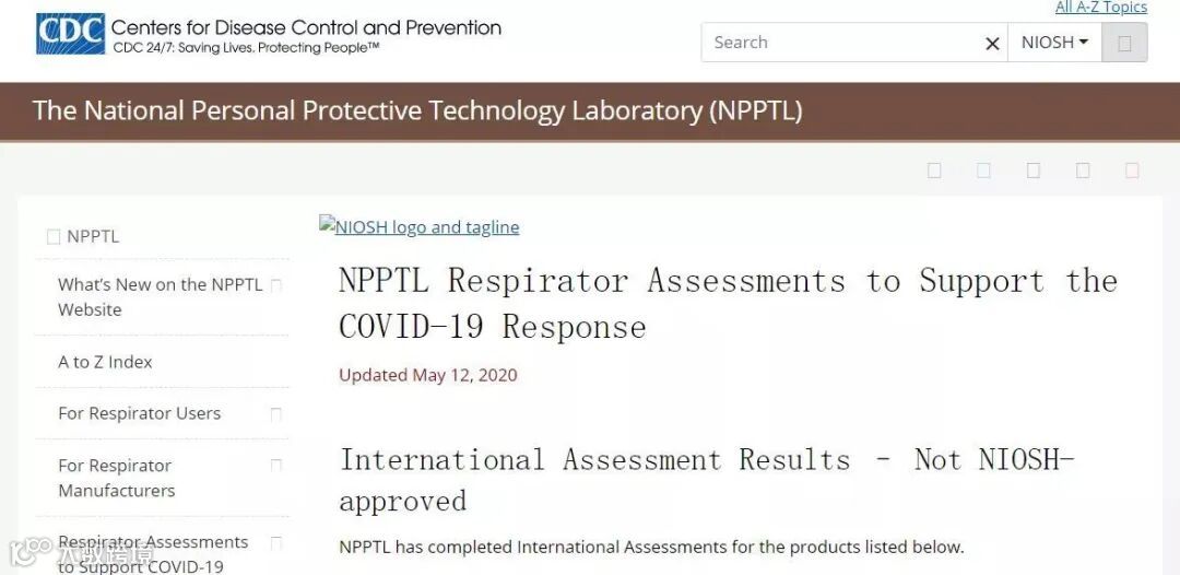 5月12日,美国疾病预防与控制中心(CDC)通过其官网发布了一份针对中国口罩的检测报告,有100+中国产口罩被检测并公布。