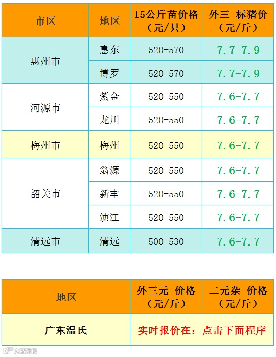 点击进入小程序,每日更新温氏价格