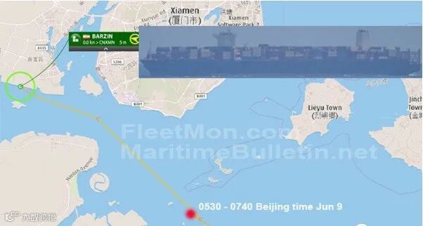 据搜航网获悉,一艘名为“BARZIN”轮的大型集装箱船,在抵达厦门港时主机失控,偏离航道,为避免主航道阻塞,当地海事局派遣了拖轮前去协助。