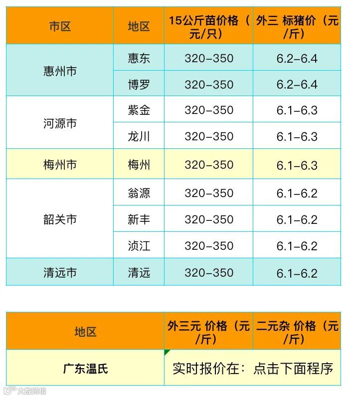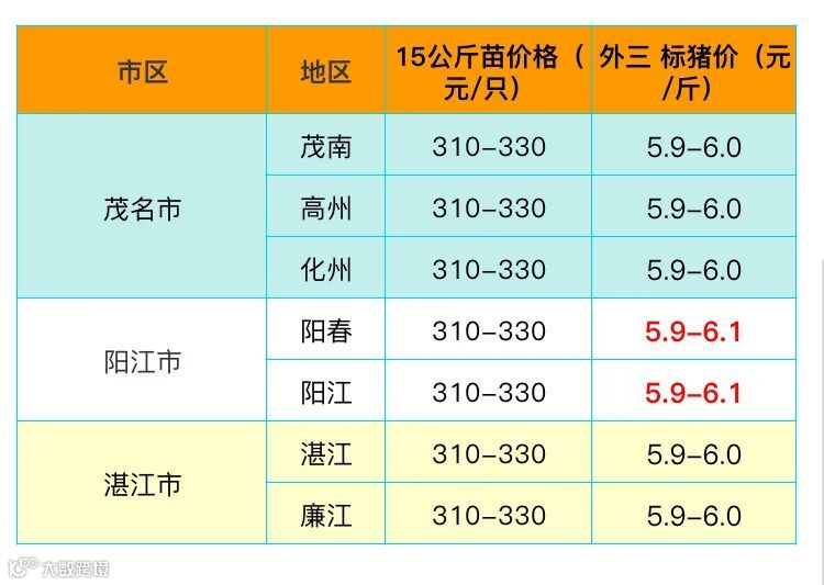 有红绿颜色部分是相对昨天有所变动的猪价;