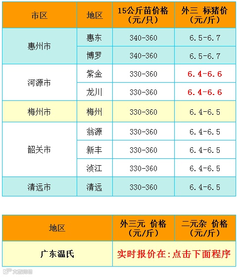 有红绿颜色部分是相对昨天有所变动的猪价;