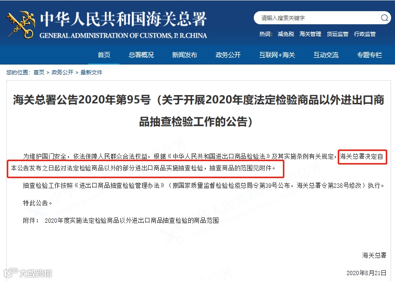(关于开展2020年度法定检验商品以外进出口商品抽查检验工作的公告)