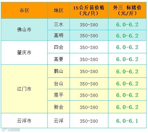 有红绿颜色部分是相对昨天有所变动的猪价;