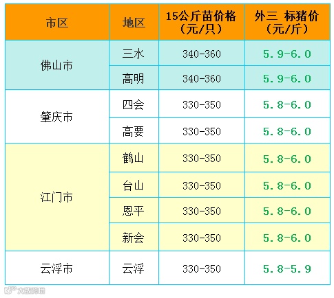 备注:猪价为喂湿料猪至喂干料猪出栏价格;