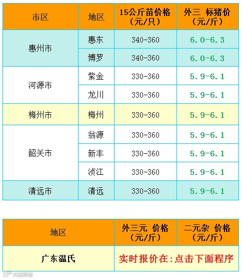 有红绿颜色部分是相对昨天有所变动的猪价;