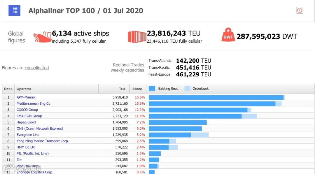 Alphaliner写道:“ HMM没有缩减运力,并且有着惊人的42%的船队增长,由于马士基和MSC根据合作协议将9艘船退回给HMM,且HMM也开始交付一系列24000 teu的新船。”