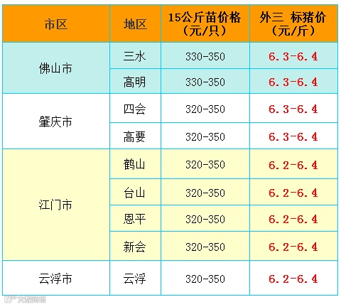 有红绿颜色部分是相对昨天有所变动的猪价;