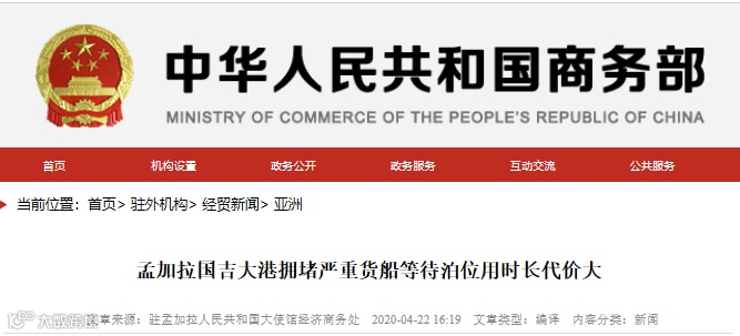 据孟加拉国《每日星报》4月22日报道,受孟加拉国抗击新冠肺炎疫情全国放假和限行措施影响,吉大港货船拥堵严重,货船到达港口外锚地后等待码头泊位用时十多天,需要为此承担额外的港口停留费、燃料费、泊位费等费用,船运公司还需承担租船费用、港口领港费、码头使用费、卸货费、集装箱占用费及资金成本和长时间等待致使预订船期变更取消等损失,经营压力骤增。报道举例称,孟加拉国OEL公司一集装箱货船于4月5日抵达吉大港港口的外锚地后,一直等待11天后才等到码头泊位卸货。另一艘船于4月10日抵达港口外锚地,还一直在等待,吉大港港口管理局昨天通知最早可能在4月26日安排到泊位。船运公司称,如果货船在港口等待时间超过20日,因高额成本和损失,船运公司将难以维持经营,呼吁相关部门取消码头等待期间的额外收费。
