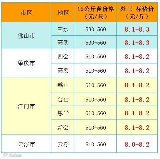 备注:猪价为喂湿料猪至喂干料猪出栏价格;
