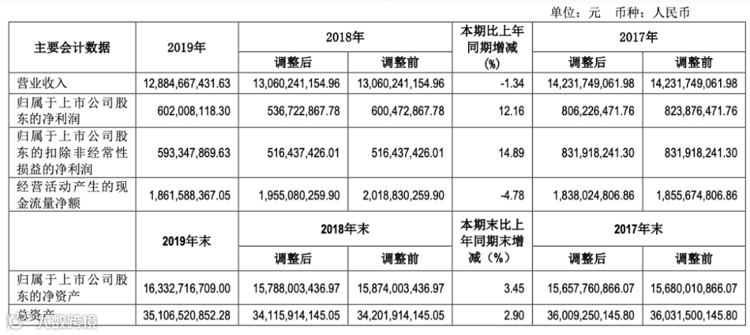 详细来说,2019 年改公司完成货物吞吐量 41,183 万吨,较上年同期 39,783 万吨增加 1,400 万吨,较去年 同期上涨 3.52% ;公司实现营业收入 128.85 亿元,较上年同期 130.60 亿元减少 1.75 亿元,下 降 1.34 %,完成年度计划 131.14 亿元的 98.25%;利润总额 13.20 亿元,较上年同期 13.31 亿元 减少 0.11 亿元,下降 0.85%;实现归属于母公司所有者的净利润 6.02 亿元,较上年同期 5.37 亿 元增加 0.65 亿元,增长 12.16%。