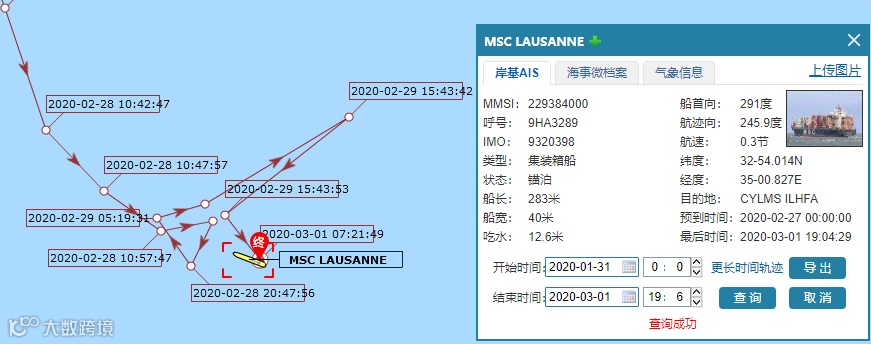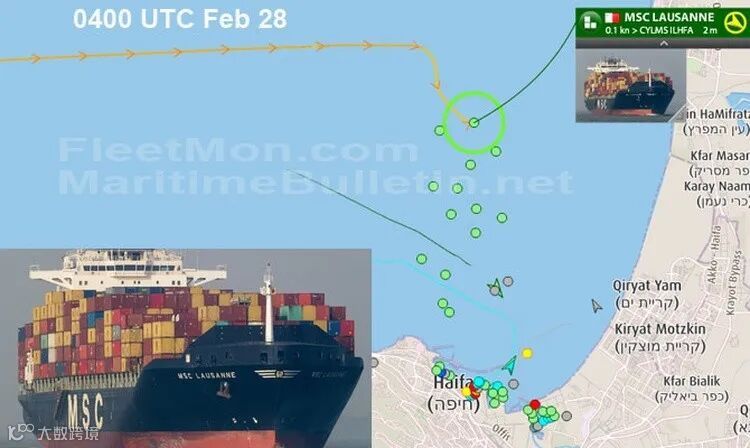 “MSC LAUSANNE”截止3月1日仍在海法锚地停泊