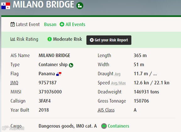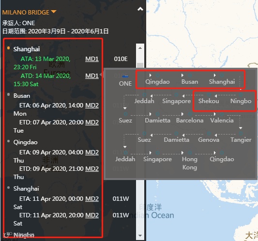 根据大船期CargoSmart数据显示,集装箱“MILANO BRIDGE”是THE联盟ONE旗下一艘经营亚洲-地中海MD航线的船舶,涉及HAPAG-LLOYD、ONE、YANG MING三家船公司供舱,其3月份曾挂靠宁波舟山港、上海洋山港,并29日于上海离港,其接下来还将挂靠国内港口包括:青岛港、上海港、宁波港和蛇口港等多个港口,近期有配载该轮出货的朋友注意了,船期可能出现一定的延误!