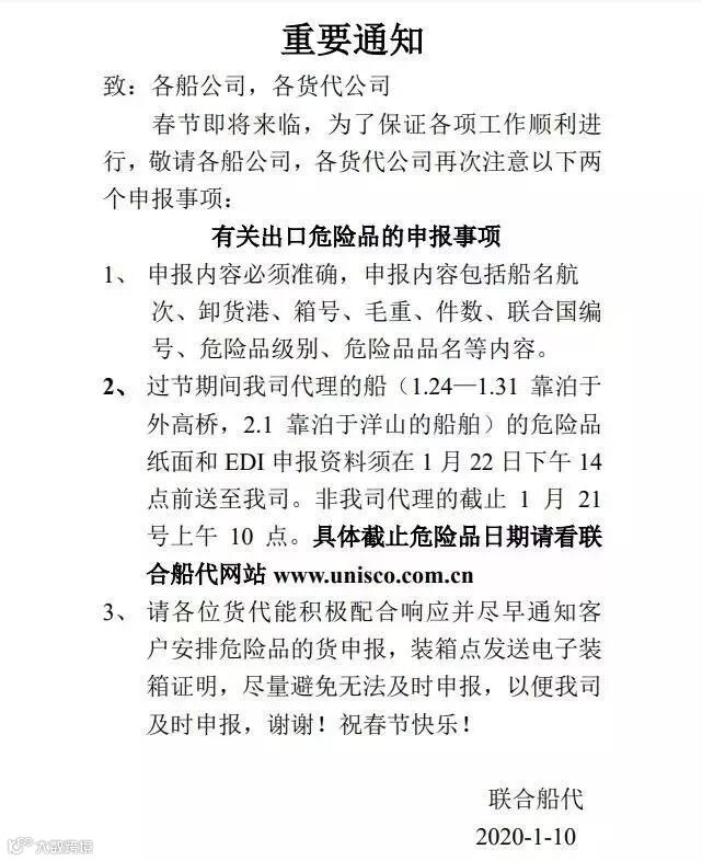 此外,规定还要求了春节期间,递交出口危险品申报资料的截止时间。