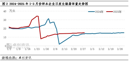 今年生猪屠宰企业多于正月初八及以后正式开工,而由于2025年春节位于阳历1月29日,因此屠宰企业全面实际开工时间在阳历2月上旬后半段,屠宰量经历由无到有、由少到多的过程,并于2月末恢复至较稳定的水平。因此,2月份日均屠宰量或成为全年最低水平,3月份日均屠宰量与2月份相比预计提升8%-10%。从当前情况及去年同期水平来看,3月份下游市场缺乏刺激需求的提振因素出现,市场或稳产稳供为主,屠宰量增幅或较为缓慢,月内生猪屠宰量增幅或不甚明显,对行情的支撑作用较小。
