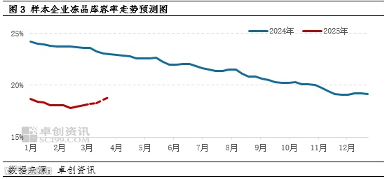 根据卓创资讯调研了解,在价格跌至较低位后,屠宰企业入库积极性提升,部分区域如山东等地的生猪屠宰企业在2月份已出现主动入库表现,带动冻品库容率较最低点小幅增加0.21个百分点。3月份生猪屠宰端的预期原料成本仍有下降空间,或进一步刺激产品分割入库的积极性,冻品库容率或继续增加,预计增加0.80-0.90个百分点。此现象或带动屠宰企业宰量小幅增加,从而对行情有利多支撑作用。