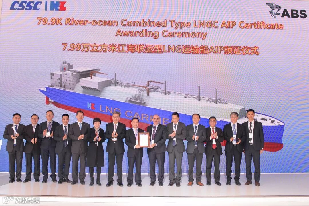 此外,同日沪东中华获得了由ABS船级社颁发的全球首例7.99万立方米江海联运型LNG船原则认可证书(AIP)。